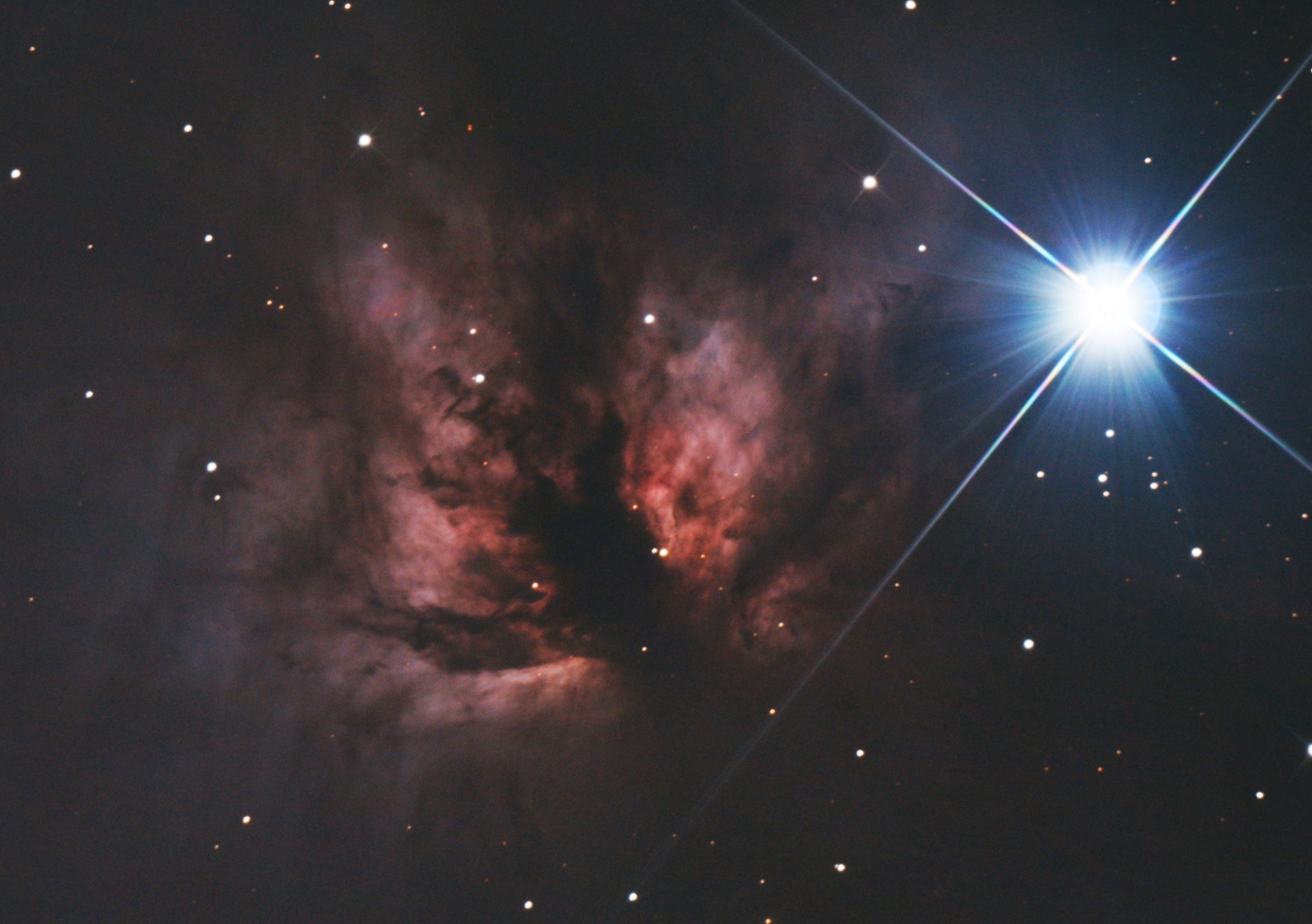 Nébuleuse de la Flamme et étoile Alnitak dans la constellation d'Orion.